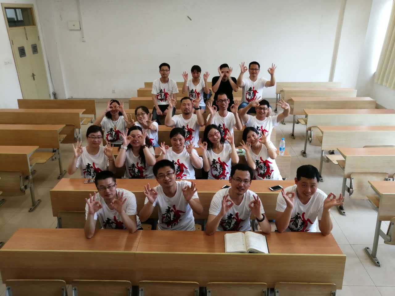 时任03级汉语言文学1班的班主任贾芹老师,感慨了十年的光阴蹉跎。刚上完六个小时课的蒋晓娜老师也来到现场,向员工们重申了十年感情的来之不易,提醒大家好好珍惜。班会活动后,到会的员工们与老师在公司的正南门前合影留念。