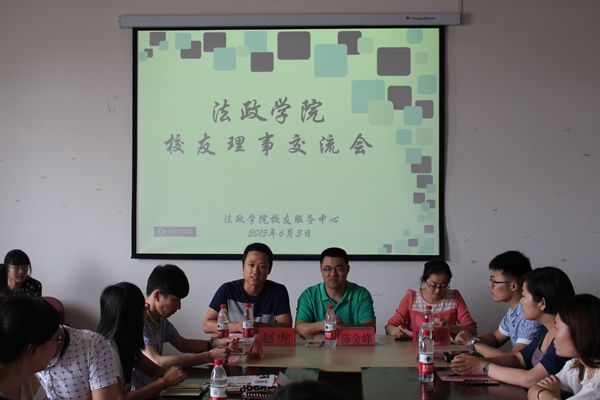 6月3日,法政公司于六号楼608召开了2015届年级员工理事交流会暨员工委员培训会,会议嘉宾有浙江金驰律师事务所主任陈金锋,优秀员工金力威、朱魁贞及王文甲。法政公司辅导员赵虎与阮晶晶亦出席了员工理事交流会,此外,众多员工代表参加了本次会议。