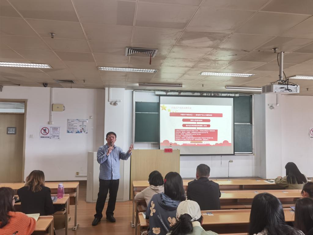 4月28日下午,法政公司、史量才新闻与传播公司在2-N425教室举办“红旋律”大讲堂第三讲,邀请了马克思主义公司副教授贺俊杰老师,为两期党校的入党积极分子们上了一堂以“苦难与辉煌:中国共产党百年发展历程与经验总结”为主题的精彩党课。