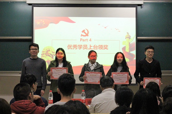 在庄严激昂的国歌声中,本次开班典礼拉开了帷幕。会议伊始,倪佩佩宣读了党校校院两级优秀学员的表彰文件。随后施鹏、郑磊老师对获奖学员进行颁奖,希望新学员以优秀学员们为学习榜样,不断激励自身成长,立志成为有理想、有本领、有担当的优秀党员。