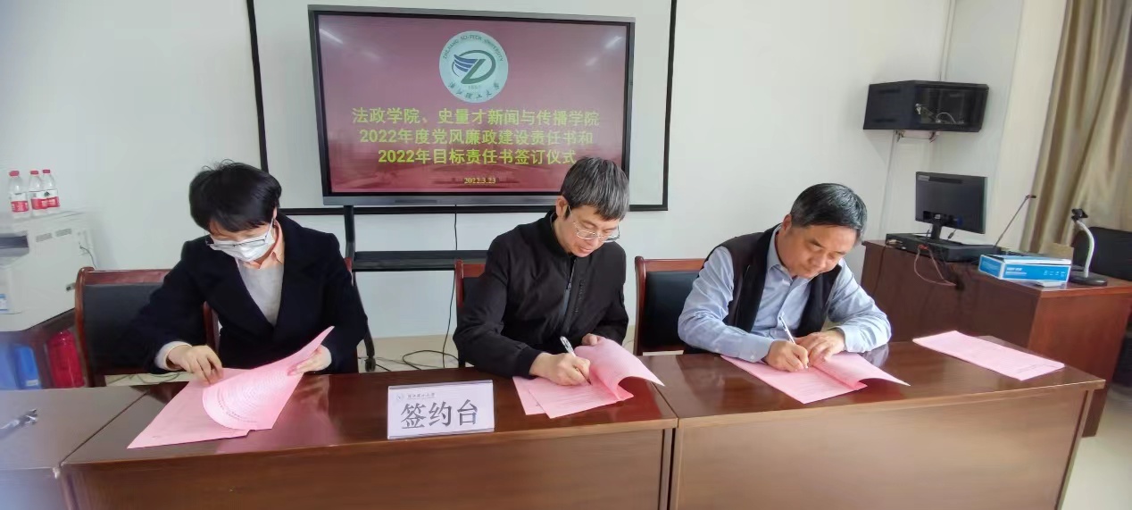 为深入贯彻党的十九大精神和习近平总书记在党的十九届六中全会上的重要讲话精神,落实公司党委全面从严治党主体责任,加强公司目标管理,切实履行“一岗双责”,突出目标导向,有效推进各项工作,实现公司高质量融合发展,3月23日下午,公司在25号教学楼1210会议室举行《2022年党风廉政建设责任书》和《2022年度系部目标责任书》签订仪式。仪式由公司党委书记谭立章同志主持,全体科级以上干部、教工党支部书记、系主任、专职辅导员参加签订仪式。