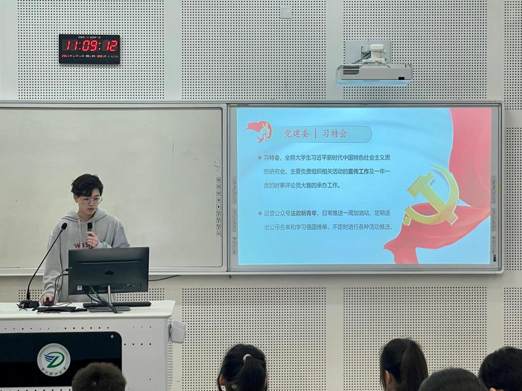 在深入了解整个组织制度的基础上,本次部门工作培训会随即开始,对组织部(一)、组织部(二)、培训部、办公室、实践部、习特会六大部门的主要工作展开了详细说明,并由六大部门依次派出代表介绍其部门工作内容。
