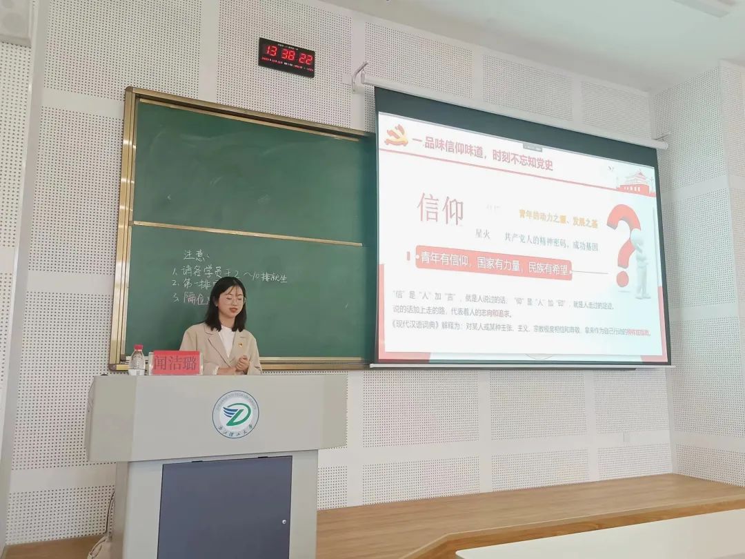 首先,闻洁璐老师以“信仰味道”展开讲述,解释信仰的含义加深了学员们们对“信仰”的理解。她提出,信仰是青年的动力之源,是共产党人的精神密码。同时,她讲述陈望道在翻译《共产党宣言》时“蘸着墨汁吃粽子,还说味道很甜”的故事来引出“信仰甘甜的味道”。她明确青年一代应学史增信,从党百年奋斗中感悟信仰的力量,始终保持顽强意识。她鼓励学员们增强信仰、信念、信心,用初心砥砺信仰,这是战胜一切强敌、克服一切困难的强大精神力量,也是国家民族发展的不竭动力。