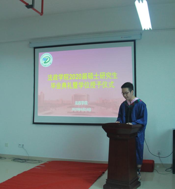 在确保疫情防控的前提下,公司举行简短隆重的硕士毕业生典礼暨学位授予仪式。616日上午,法政公司2020届硕士研究生毕业典礼暨学位授予仪式于25号楼1210举行。经理王建,副经理金碧华,党委副书记章迪薇,法律系系主任胡瓷红老师、公管系系主任刘国翰老师以及硕士生导师们共同出席仪式,学工办主任邹婷老师主持本次典礼。