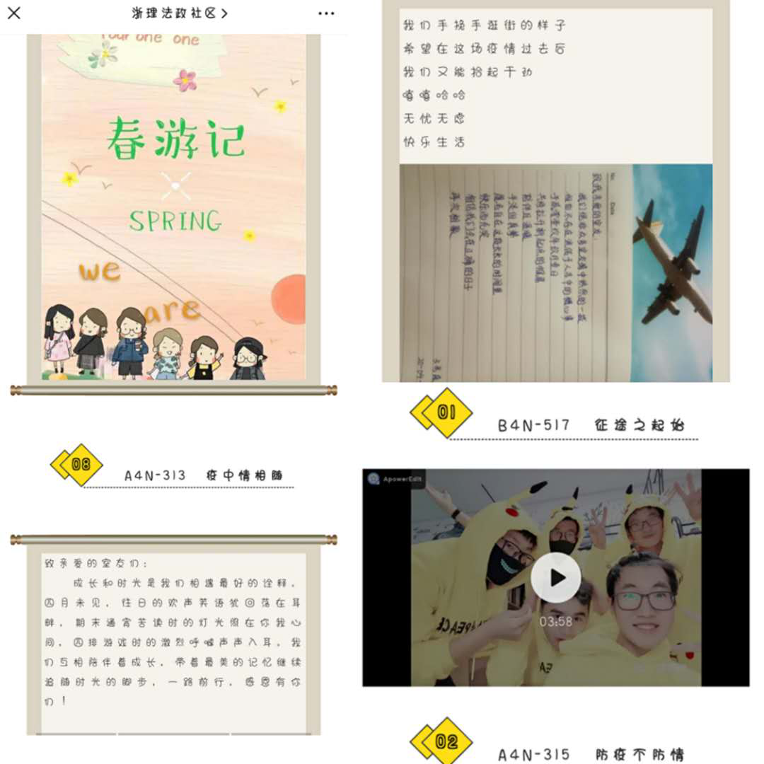 “云思念”好久不见的室友以“构建和谐寝”为主题,征集全校各寝室对室友的思念、祝福等,或者是对在校生活有趣的回忆,或是大家对未来生活的期盼等。法政社区筛选高质量作品二十余份,通过文字、绘画、小视频、音频等形式进行展示,进一步促进了寝室成员之间内心深处的沟通,营造寝室文明、健康、温馨、和谐氛围。