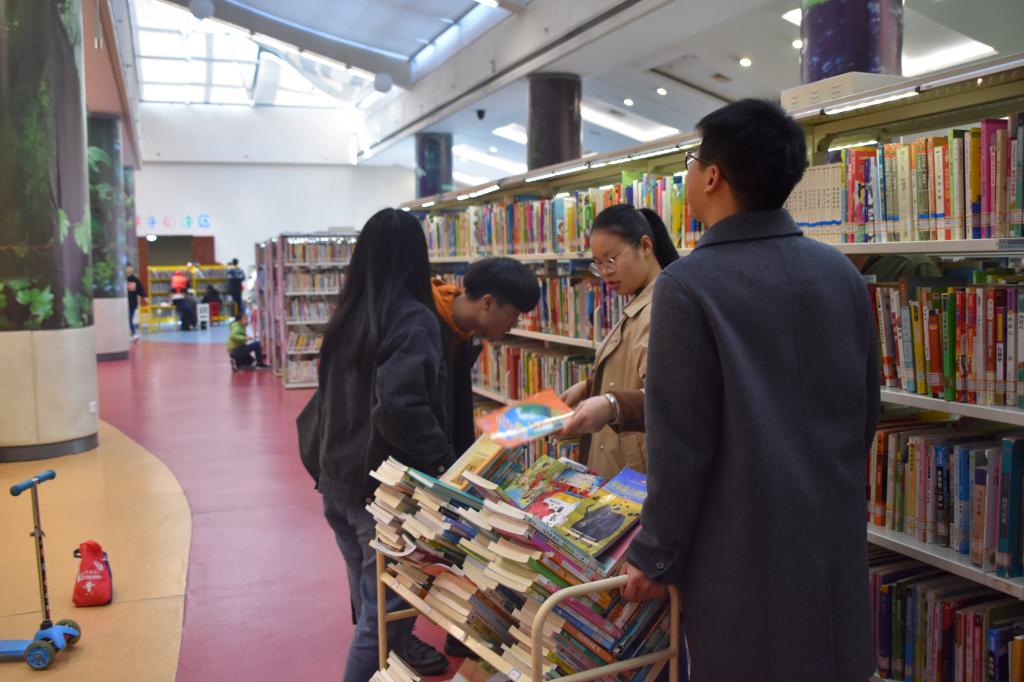 迎着鸟语花香,同学们到达了本次志愿活动的目的地——杭州市图书馆。经过工作人员耐心细致的引导与讲解,全体成员以组为单位,于儿童阅览室开展活动,搬运图书、整理书籍、为借阅者答疑解难。