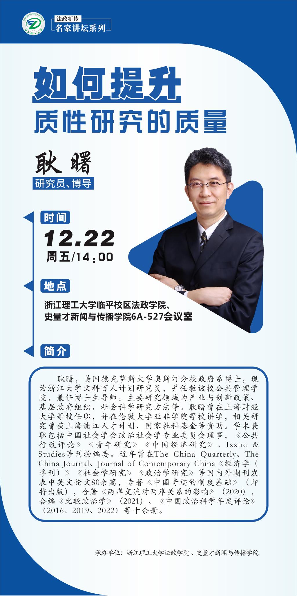 耿曙研究员讲座预告——如何提升质性研究的质量
