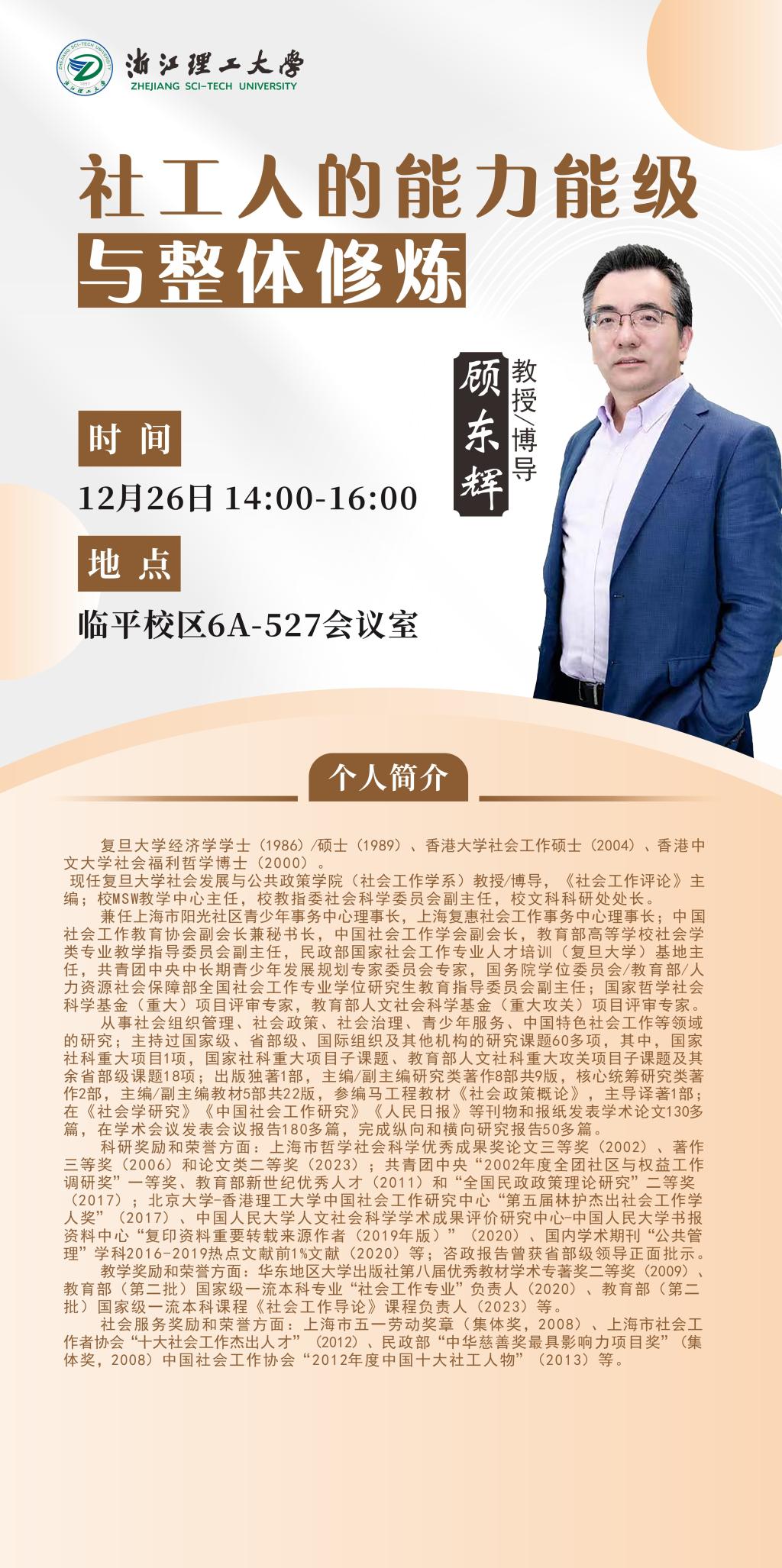 顾东辉教授讲座预告——社工人的能力能级与整体修炼