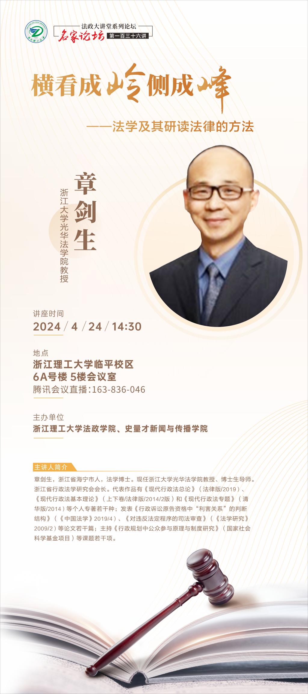 章剑生教授讲座预告 横看成岭侧成峰——法学及其研读法律的方法