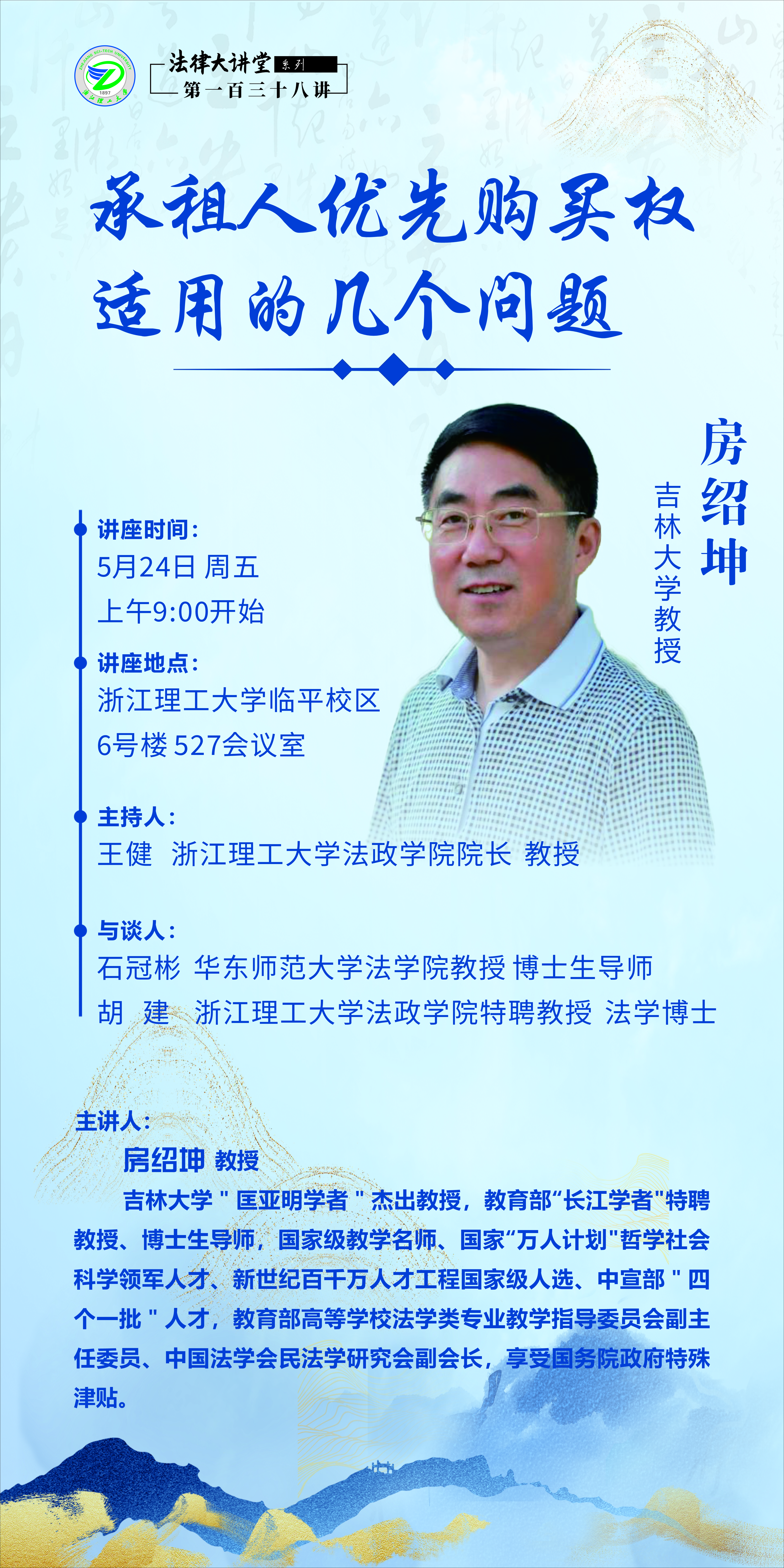 房绍坤教授讲座预告——承租人优先购买权适用的几个问题