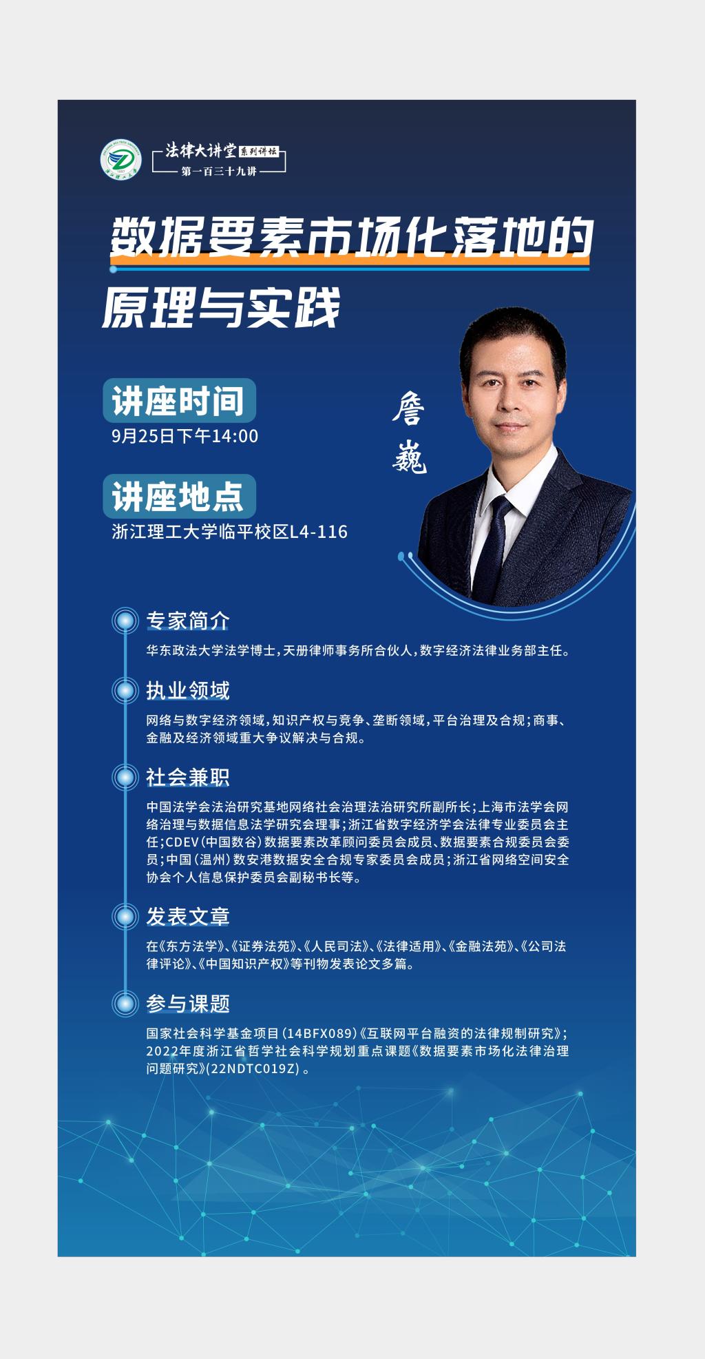 詹巍博士讲座预告——数据要素市场化落地的原理与实践