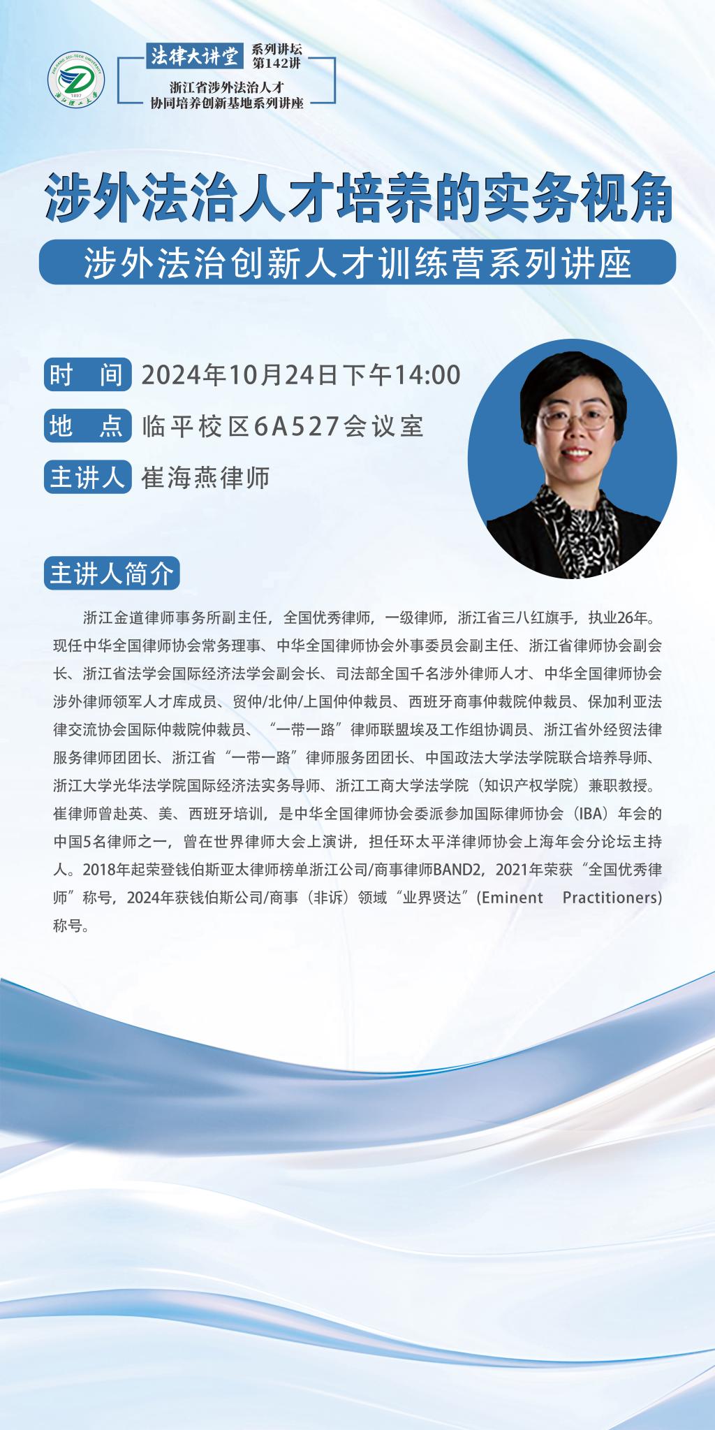 崔海燕律师讲座——涉外法治人才培养的实务视角 涉外法治创新人才训练营系列讲座