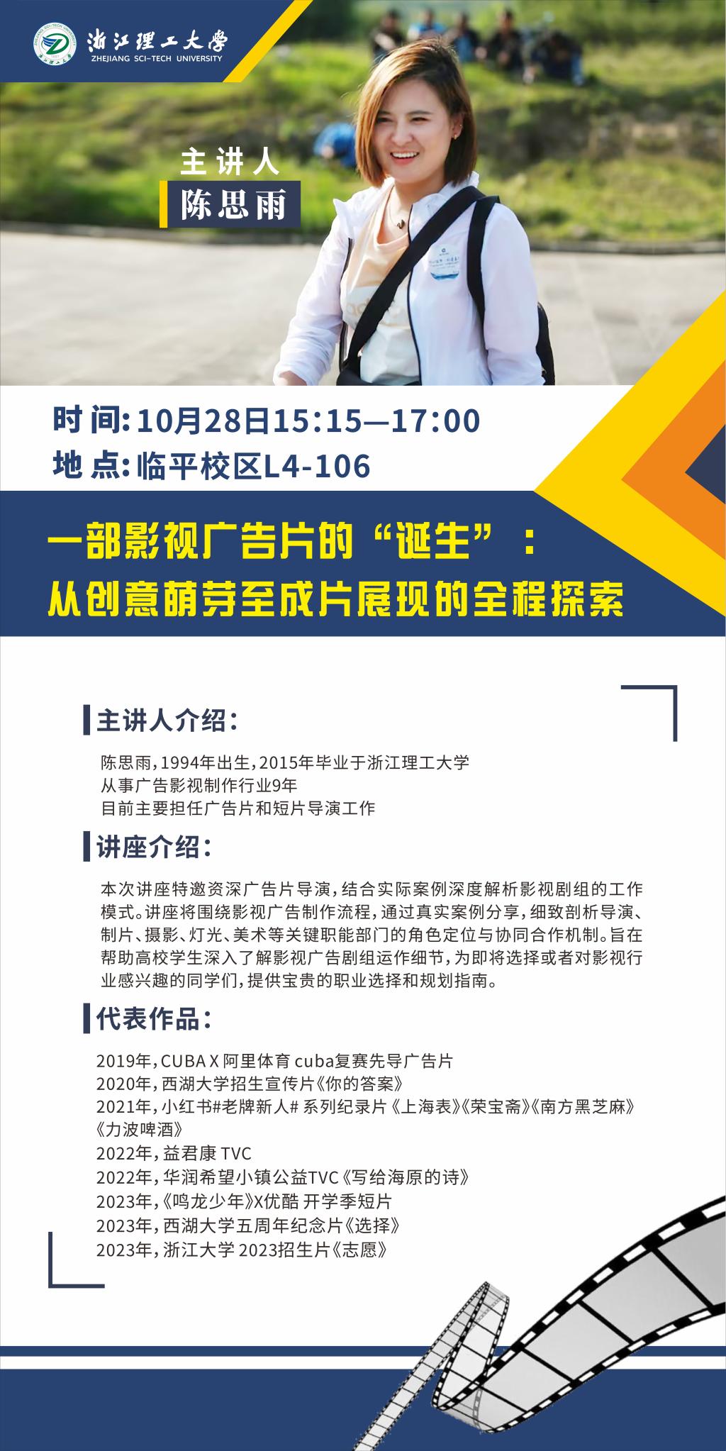 陈思雨导演讲座预告—-《一部影视广告片的“诞生”:从创意萌芽至成片展现的全程探索》
