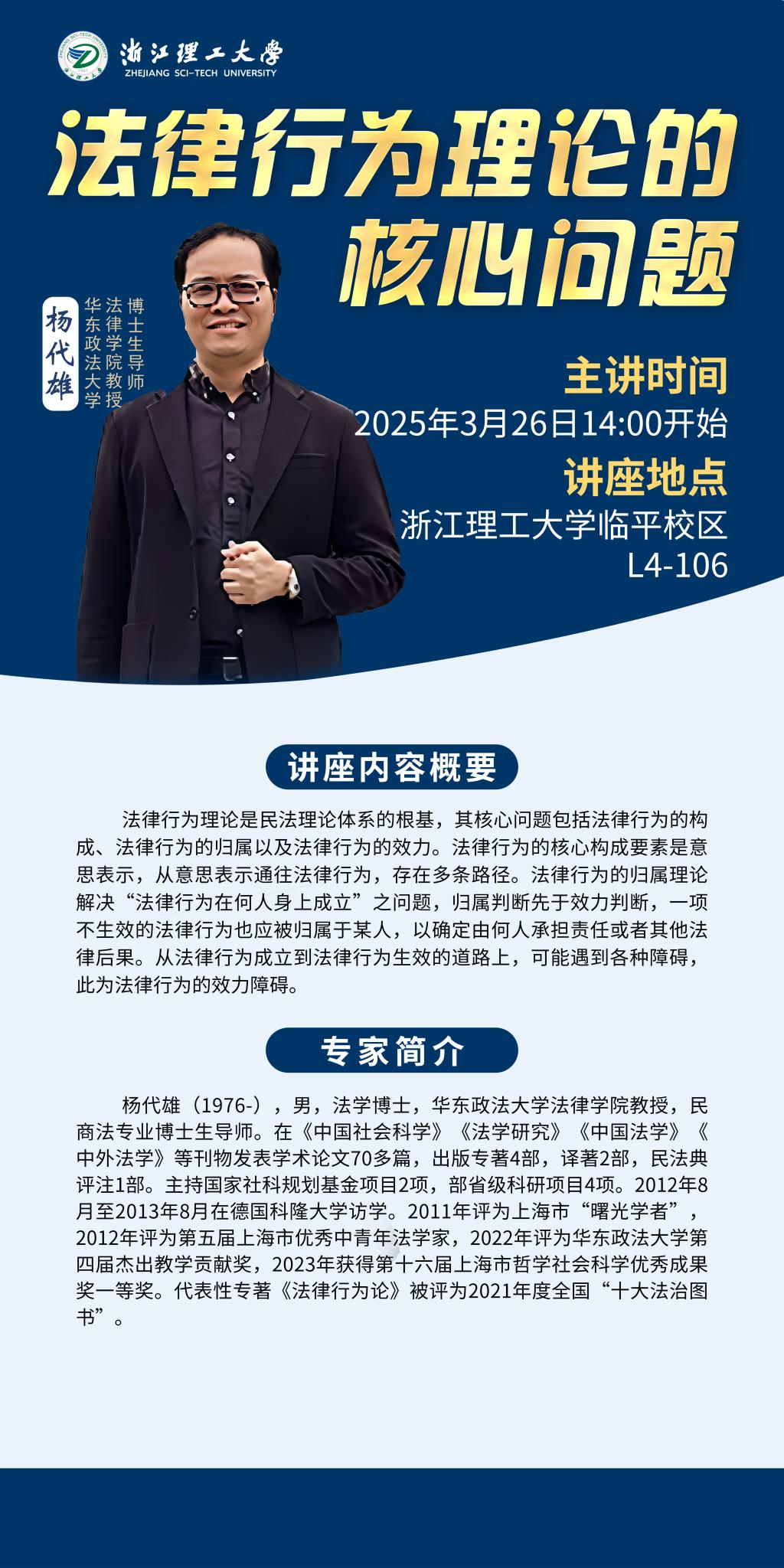 杨代雄教授讲座预告——法律行为理论的核心问题