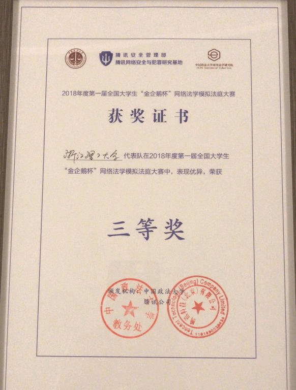 11月3日至4日,公司模拟法院代表队应邀赴中国政法大学参加首届全国老员工“金企鹅杯”网络法学模拟法庭大赛。本次赛事由中国政法大学和腾讯公司联合主办,有24所高校队伍参赛。公司参赛队伍由王健经理牵头,陈学辉和秦红嫚两位老师指导,邵冰茜、常庆茜、马欣怡、周长婷、李畅、徐向等同学组成。备赛阶段,公司还邀请了浙江六和律师事务所的田暐律师、杭州市江干区人民法院的沈亚青庭长、杭州市临安区人民检察院的夏立强检察官、温州瑞安市人民检察院的胡凯检察官以及郑旭江老师进行了悉心指导。