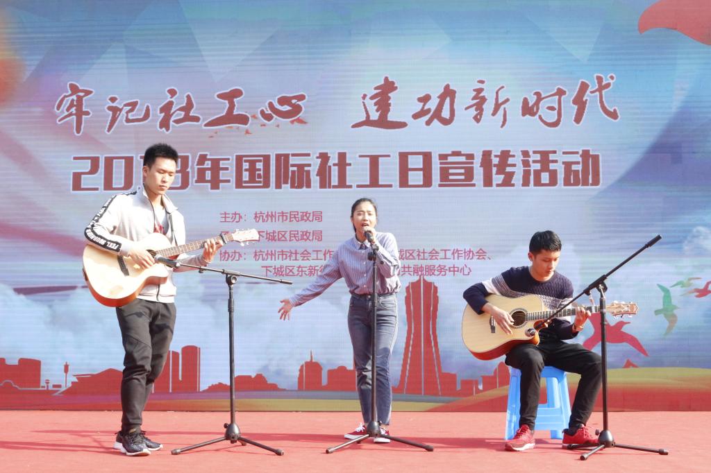 为了庆祝第12个国际社工日的到来,3月23日下午,杭州市在下城区东新街道城北体育公园举办了国际社工日主题宣传活动。此次活动以“牢记社工心,建功新时代”为主题,由杭州市民政局主办,下城区民政局承办,杭州市社会工作者协会等协办。活动现场有20个展位,分为社工机构展示、公益服务与体验、未来社工展示等四大区块,K1体育社会工作系师生应邀参与此次活动,并在“未来社工展示区”积极展示浙理社工风貌。