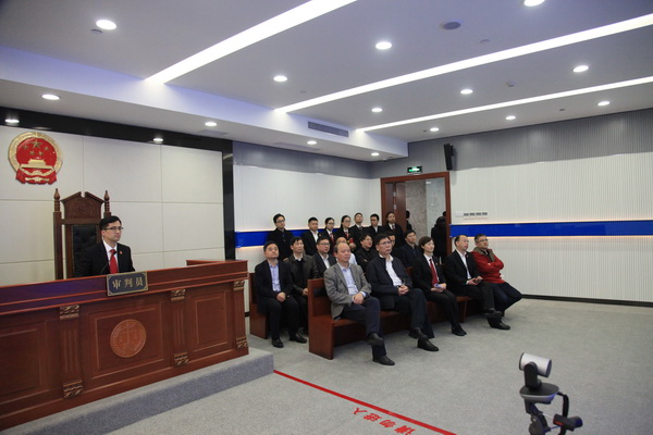 签约仪式前,在杜前的陪同下,陈文兴一行参观了法院大厅、诉讼服务中心,并现场观摩了网络法庭和庭审(录像)。