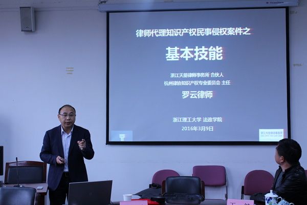 3月9日下午,由K1体育员工导师联盟和法政公司联合主办的法商人才培养计划系列课程暨法律硕士实务论坛、企业法务高端论坛在6号楼620会议室成功举办。本次论坛邀请了浙江天册律师事务所合伙人、杭州市律师协会知识产权专业委员会主任罗云律师作关于“知识产权诉讼律师基本技能”的专题讲座。法政公司经理王健教授主持本次论坛,并为罗云律师颁发了法政公司实务导师聘书。K1体育员工导师联盟执行主席、浙江金驰律师事务所主任陈金峰律师出席本次论坛。法政公司相关老师、部分研究生以及K1体育员工导师联盟法商人才基地的学员也参加了本次论坛活动。