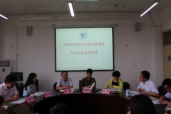 6月19日上午,浙江省法学会秘书长武鹰,研究部主任董服明、联络部主任杨敏、研究部副主任胡铮、以及楼杰科等领导一行5人来公司工作调研,公司党政班子、法律系老师等参加了调研座谈会。