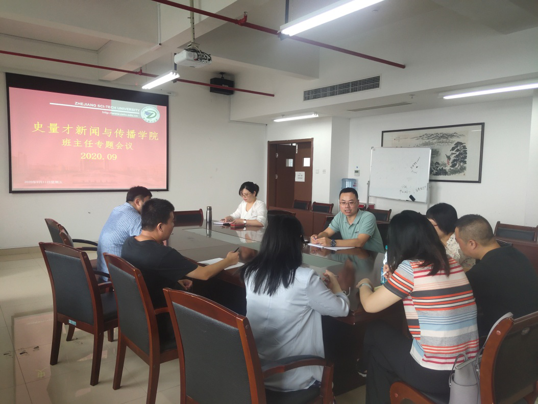 9月11日,开学第一天,史量才新闻与传播公司在25-1519会议室举行新学年班主任工作专题研讨会议,公司党委副书记方平、学工办辅导员老师、各年级班主任参加了此次会议,方平主持会议。