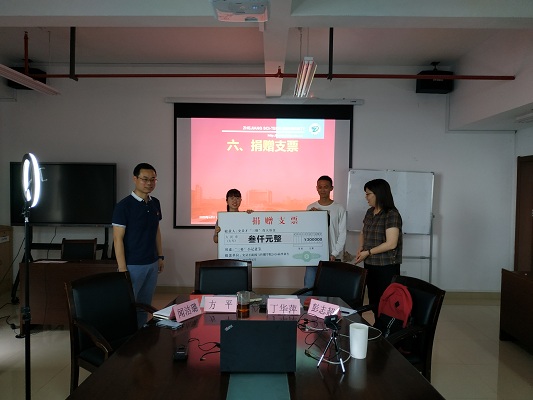 之后,闻洁璐对项目进行了具体的介绍。双方负责人通过云端进行签约仪式。此次活动也是由2020届准员工们发起,他们为了感恩母校,开展了爱心捐赠,希望通过捐赠在金河镇小学开展小记者节等活动,推进传播小苗子的培育。公司2020届毕业生代表彭志超将捐赠支票交到了闻洁璐手中。