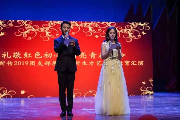 10月20日晚,史量才新闻与传播公司在公司员工活动中心小剧院主办了以“礼敬红色初心,闪亮青春使命“为主题的2019年团支部展演暨新生才艺晚会。出席此次晚会的领导有史量才新闻与传播公司党总支书记兼公司经理陈改玲老师、党总支副书记方平老师、学工办主任丁华萍老师、新疆内派主任罗嘩琚老师、少数民族预科班班主任朱灵芝老师、公司辅导员赵威老师、杨伟杰老师。