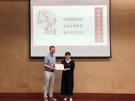 典礼上,来自毕业生党员集体捐赠的一笔“特殊党费”,彰显了员工党员的担当,他们自愿上交自己工资的10%作为专项资金,定向捐赠给乐山市金口河区鲤鱼浩小学支教的2018届戢莹琳员工,用于培养“小小新闻人”、“鲤鱼小记者”。即时连线的小学视频,另在场的师生动容。