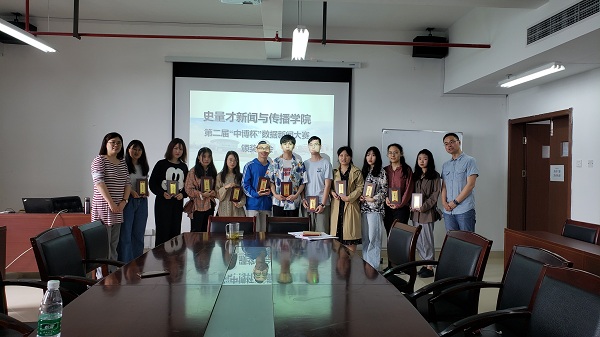 5月17日中午,为期4个月的“中博杯”第二届数据新闻大赛正式落幕,颁奖大会在25号楼1519举行。史量才新闻与传播公司党总支副书记方平,学工办主任丁华萍以及获奖团队共同出席本次颁奖会。