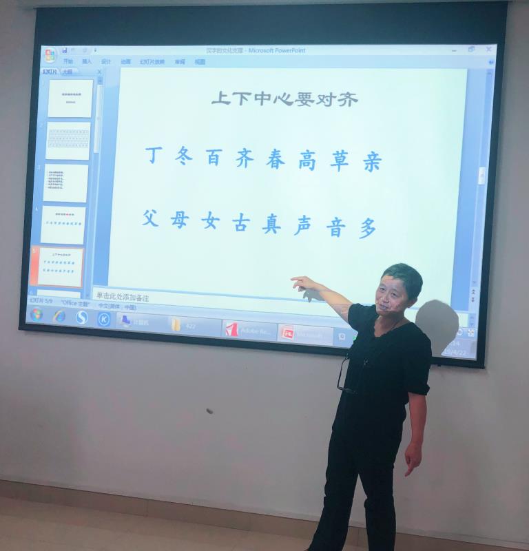 首先,系主任施仁娟对首批驻毛里求斯孔院进行汉语教学的两位老师凯旋归来表示了热烈欢迎。然后张也频老师进行了以“汉字的文化支撑”为题的经验分享。她结合孔院的办学条件和员工特点,认为汉字教学不仅要研究构字和构形,还要和文化、社会、心理、认知等方面联系起来。张老师把自己多年的汉字教学经验凝结在六句话中:左右均衡轴对称,上下中心要对齐,框架饱满内外匀,散点向心有呼应,记音表意源于形,规范生动汉字美。张老师同时还展示了孔院部分员工的作业,确实书写工整、结构匀称、字形美观。接下来陈婧老师以“山海之间”为题进行了经验分享。她先以数张风景优美的图片介绍了毛里求斯这个国家的基本情况,然后结合孔院的教学特点,认为“寓教于乐”是一种很有效的教学方式,即把游戏、演唱、朗诵等形式融入到语言和文化教学中,能够激发当地人极大的汉语学习热情,取得事半功倍的教学效果。两位老师还介绍了毛里求斯的一些风土人情,引发了在座老师对毛里求斯浓厚的兴趣,大家展开了热烈讨论。