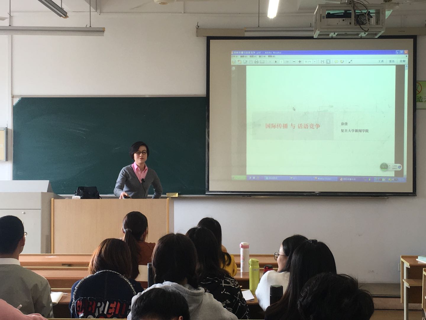 11月5日下午,复旦大学徐佳副教授应邀在2号北楼427 教室为公司师生带来了题为《话语与国际传播》的学术讲座。徐佳现为复旦大学新闻公司副教授,担任《Global Media and Communication》国际编委、复旦-伦敦政治经济公司全球媒体传播与传播双硕士项目主任、复旦-伦敦巴黎政治经济大学传播、媒体与创意产业双硕士项目主任。