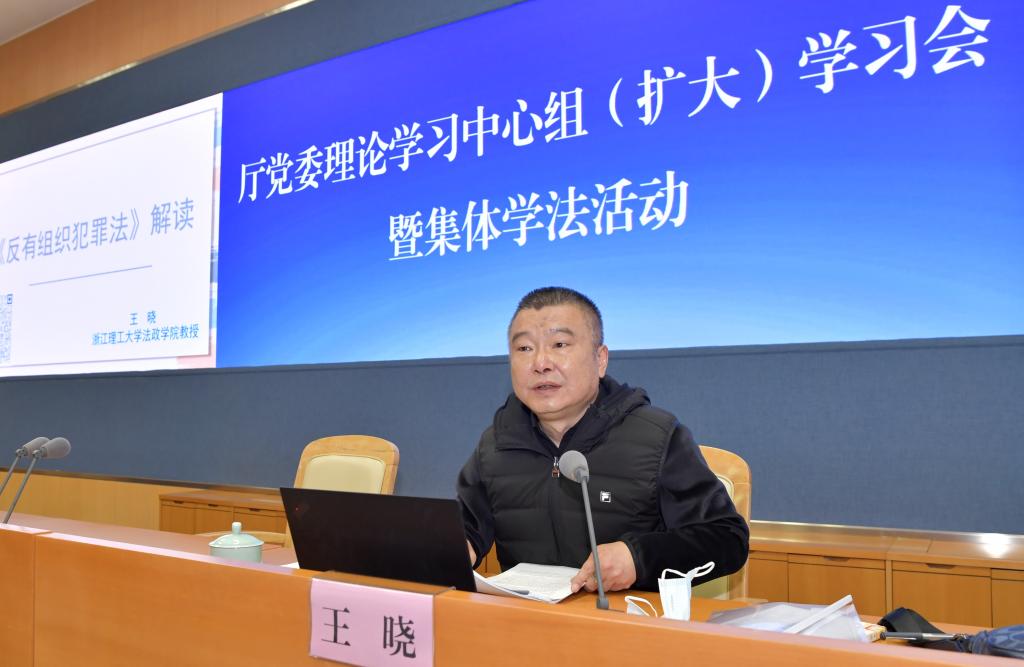 3月23日上午浙江省公安厅顺利举行党委理论学习中心组(扩大)学习会暨集体学法活动公司法学教授、硕士生导师王晓受邀作《反有组织犯罪法》专题辅导讲座。