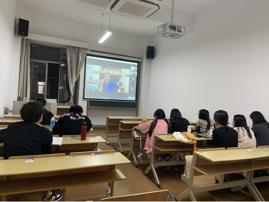 在讲座的讨论环节,叶伟民与同学们进行积极互动,对员工在实践过程中遇到的采访受阻、平衡自身情感等难题进行一一解答。