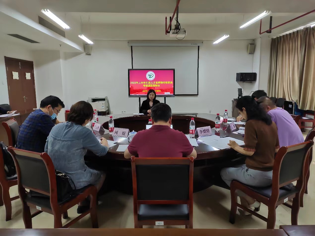 5月27日下午,公司召开了2022年上半年引进人才首聘期考核期满考核述职答辩会,参加本次考核的老师有6位,分别为:法律系王娅、徐望,社工系袁园,中文系娄燕京,汉语国际教育系吴盼(由教科办代述职)、王攸然。参加本次述职答辩会的公司学术委员会专家分别是:王健教授、王晓教授、李熠煜教授、顾克勇教授、闻娱教授、陈艾华教授、于志强教授。