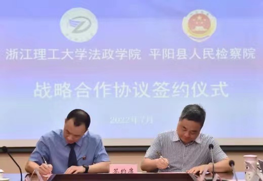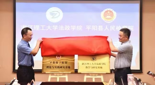 会上,公司王健经理与平阳县人民检察院王作建检察长代表校检双方签订《关于法律人才培养与理论研究战略合作协议》,并为“K1体育法政公司教学与研究基地”“平阳数字检察理论与实践研究基地”揭牌。