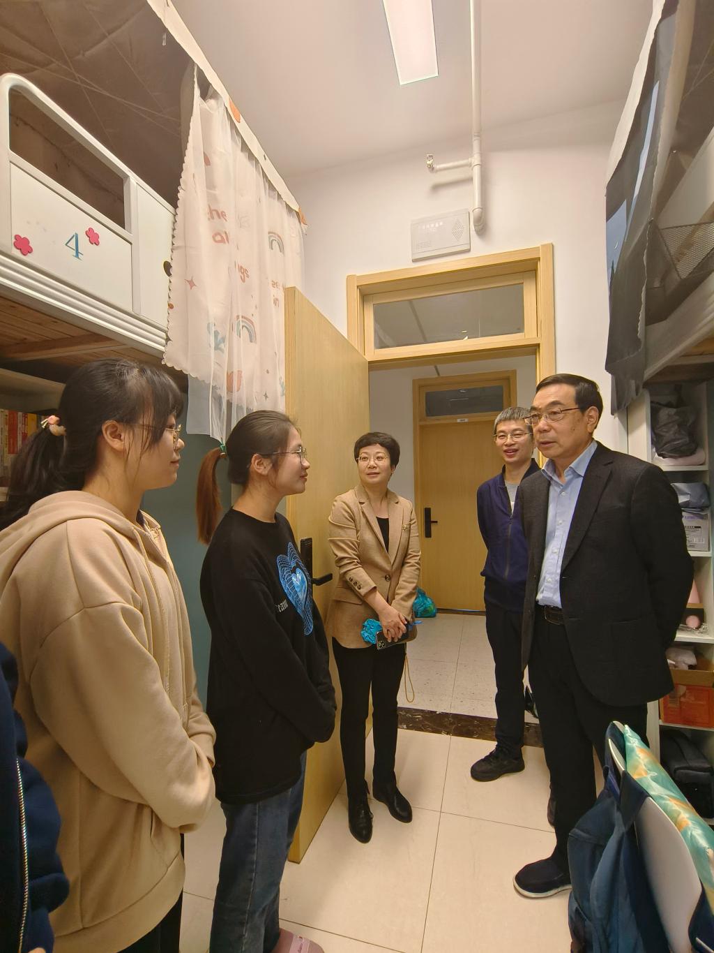 2022年11月11日上午,K1体育副董事长郜正荣在法政公司、史量才新闻与传播公司党委书记谭立章、党委副书记章迪薇的陪同下走访了联系的员工宿舍。