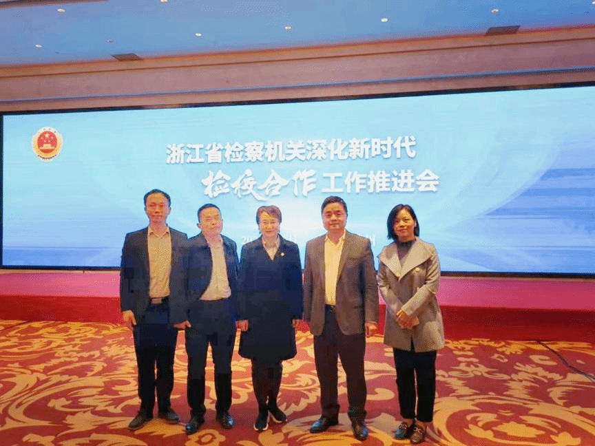 11月22日下午,由浙江省检察院举办的“深化新时代检校合作工作推进会”在浙江望湖宾馆举行。此次会议的主题为“深化检校合作,推进深度融合”。推进会由浙江省人民检察公司党组副书记、常务副检察长黄生林同志主持。浙江省人民检察公司党组书记、检察长贾宇,浙江省委政法委常务副书记、省法学会党组书记、常务副会长朱晨,浙江省教育厅党委委员、副厅长于永明,浙江省委组织部干部四处副处长许跃峰,浙江省检察院政治部主任胡梅奎等领导出席本次推进会并做重要讲话。