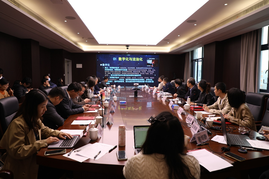 丁祖年主任以《数字化与法治化——我省数字化改革中的法治问题》为题,深入探讨了浙江省数字化改革中的法治问题。他从数字化与法治化二者的概念、关系视角出发,首先介绍了现阶段浙江省数字化改革概况及法治保障方面存在的问题,并提出了五条针对性意见;其次从立法、执法、司法、普法四个维度展开论述数字化技术在法治工作的运用与所遇难题,指出数字化在提升社会治理效益方面大有可为;最后他特别指出,我们一方面要加强数字化技术的运用,另一方面要审慎评估,尽可能避免其带来的负面影响。