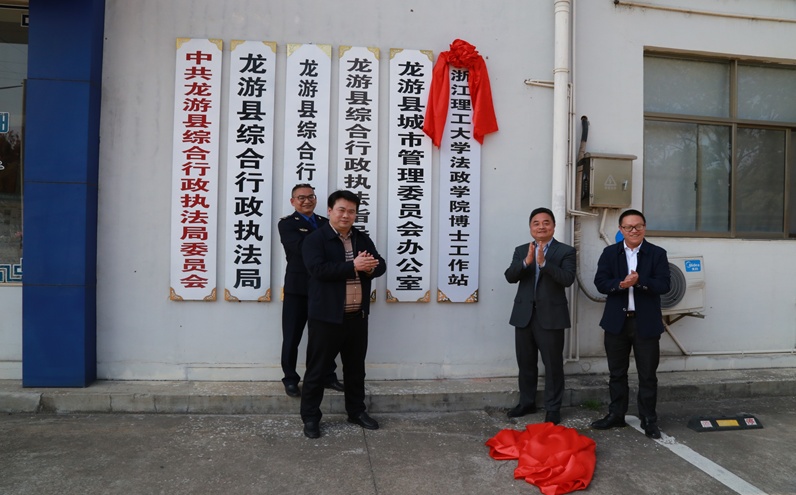 2023年3月9日下午,为充分发挥公司法学专业人才优势,提升地方行政综合执法部门的执法水平和治理水平,公司经理王健一行与龙游县综合行政执法局达成设立法学博士工作站的战略合作意向,并顺利举行揭牌仪式。龙游县委副书记、政法委书记徐新华,衢州市综合行政执法局领导高小华,县综合行政执法局局长方敏华、政委冉雄进等领导和负责人列席了本次揭牌仪式并发表讲话。公司经理王健,法律系李莉老师、沈光老师、王娅老师一同出席了揭牌仪式,并就地方综合行政执法部门日常管理工作中的实务与理论问题展开交流和互动。