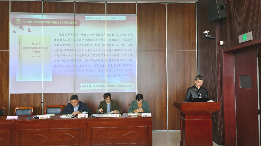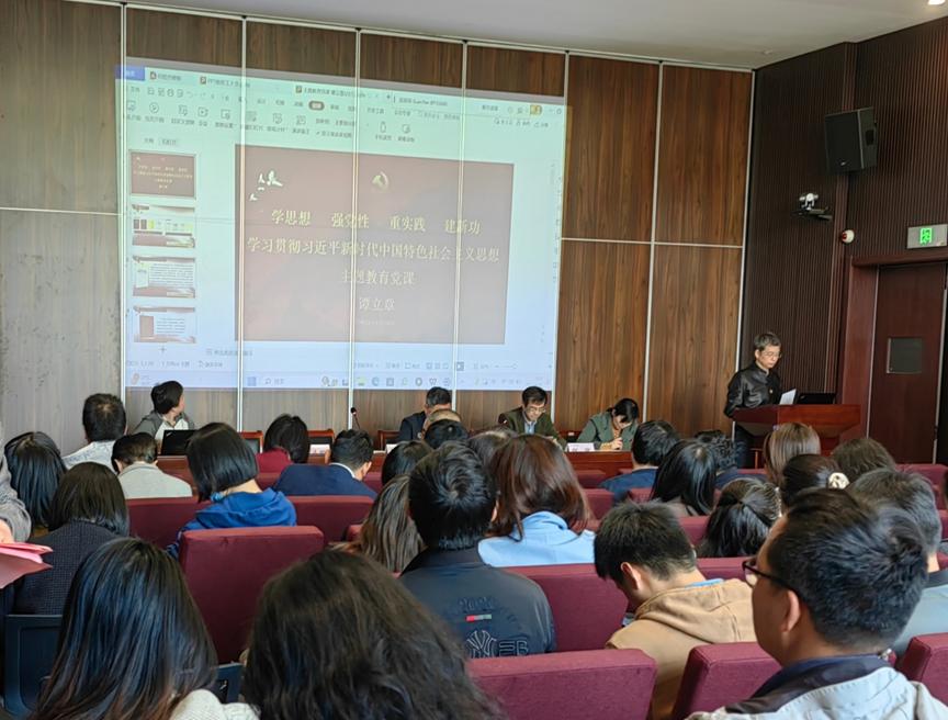 学习贯彻习近平新时代中国特色社会主义思想主题教育推进会,谭书记带领全院老师学习主题教育党课。