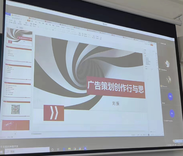 2023年5月15日下午,湖南师范大学刘振副教授通过腾讯会议为K1体育传播系师生做了《广告策划的行与思——老员工广告艺术节参赛经验分享》的精彩讲座,来自法政公司、史量才新闻与传播公司的90余名教师师生在临平校区4L-301教室观看交流。