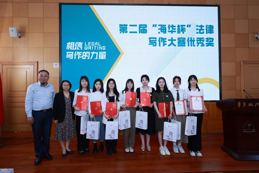 本次大赛由华东政法大学律师公司、律新社、上海市海华永泰律师事务所主办,得到上海市企业法律顾问协会、威科集团、法蝉、中华遗嘱库等机构的大力支持。颁奖仪式于6月4日下午3点在华东政法大学长宁校区交谊楼会议室举行。在颁奖环节,威科集团中国区法律及财税业务销售副总裁刘雪丽,上海国际仲裁中心仲裁员、前东陶(中国)有限公司法务总监陆宇平为获奖代表颁奖。 公司赖宇晶和沈依诺同学作为获奖作者代表发表获奖感言,王瑜琦和陈姿颖同学在法律写作中的“道”与“术”座谈会中作主题分享。