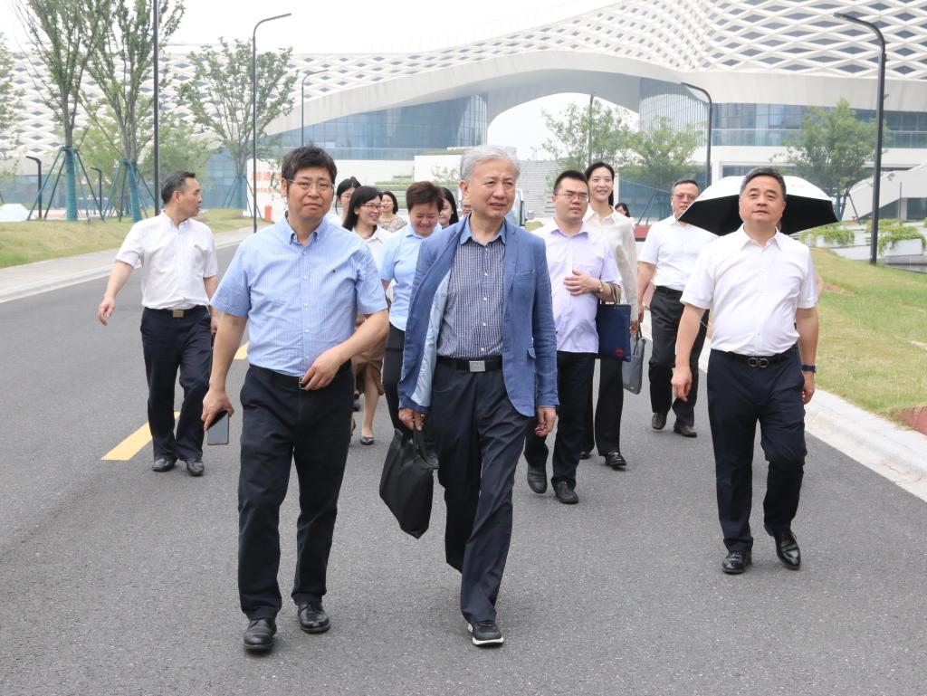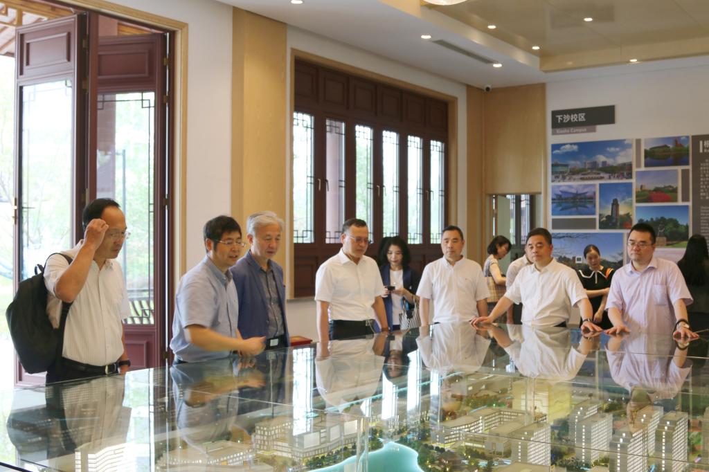 郎胜组长一行在傅昌盛主任、王健经理等的陪同下实地考察了图信大楼、公共教学楼、蚕学馆等坐标性设施。傅昌盛主任向专家咨询组介绍了公司概况、临平校区的建设情况和各个公司的基本情况,郎胜组长对公司的热情接待表示感谢,并对公司临平校区的教学环境和发展理念给予高度评价。