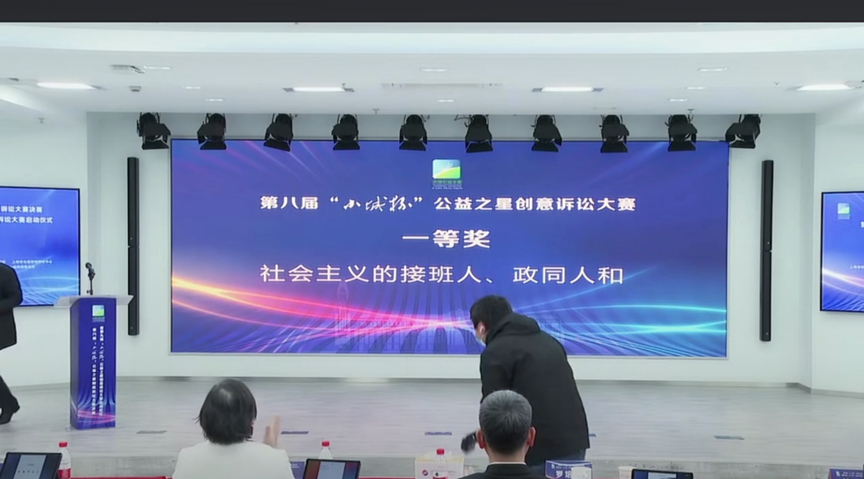 2022年12月2日,第八届“小城杯”公益之星创意诉讼大赛决赛在松江区融媒体中心成功举办。本届大赛由上海司法局指导,华东政法大学、上海市律师协会主办,吸引了全国70余所高校共计377支队伍报名参赛,最终来自中国政法大学、吉林大学、上海交通大学、华东政法大学等院校的 14 支队伍进入决赛。其中由公司互联网法律援助中心成员张羽翔、殷浩涵、姚奕芸、高钰涛、唐佳芸组成的“社会主义的接班人”队荣获一等奖。