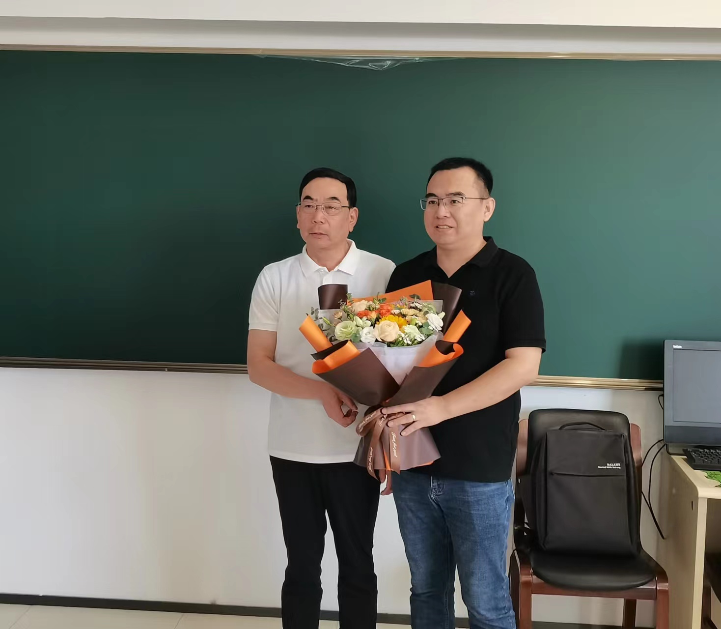 郜董事长对宋老师的工作成果表示高度认可,对宋老师的工作态度表示赞许,并送上鲜花祝贺宋老师首聘期考核优秀,也提前祝贺教师节快乐。