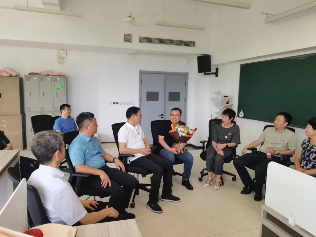 2023年9月4日下午,副董事长郜正荣带领校办主任陈善晓、人事处处长陈爱喜、校工会、妇联常务副主席张信群等一行在教师节前夕到公司慰问首聘期考核优秀新教师宋善铭,公司领导班子陪同慰问。