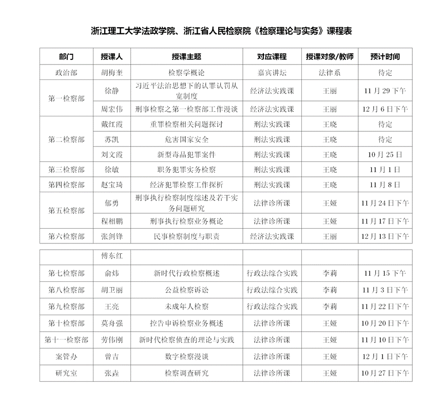本次实践课活动揭开了2023年度检校共建协同育人系列活动的序章,接下来,公司与浙江省人民检察院合作的《检察理论与实务》实践课程将陆续开讲。浙江省人民检察院内部各个检察部门将委派经验丰富、业务扎实的精干力量前往公司进行授课,讲座内容涵盖新时代检察机关刑事检察(重罪检察、职务犯罪检察、新型毒品犯罪检察、经济犯罪检察、刑事执行检察、检察侦查等)、民事检察、行政检察、公益诉讼检察、未成年人检察、检察调查、数字检察等核心业务。届时《检察理论与实务》系列将与公司的《刑法实践课》《经济法实践课》《行政法综合实践》《法律诊所》等实践课程进行深度融合,打造法学教育实践和检察实务合作交流平台,在新时代检察理论与检察实践方面实现共建共赢,携手在检校合作培育新时代应用型拔尖法律人才中结出更多硕果。