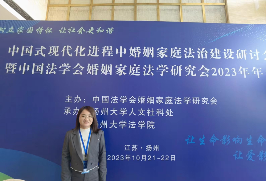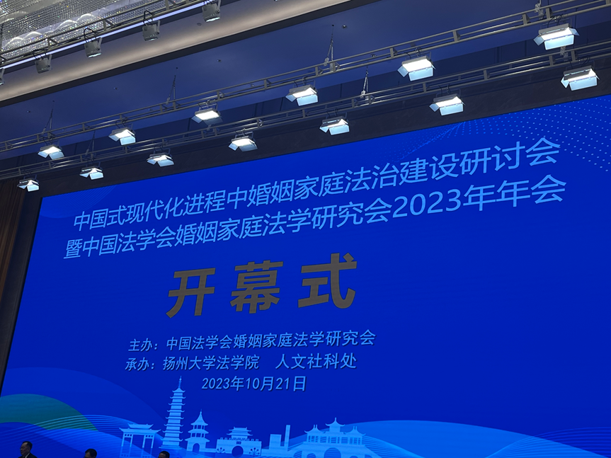 10月21日至22日,中国式现代化进程中婚姻家庭法治建设研讨会暨中国法学会婚姻家庭法学研究会2023年年会在扬州召开。本次会议由中国法学会婚姻家庭法学研究会主办,扬州大学人文社科处、扬州大学法公司承办,来自全国的100余位理论与实务工作者参加了此次会议。公司教师刘宇娇应邀参加了此次年会。