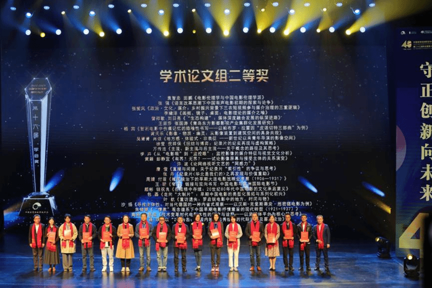 中国高等院校影视学会是国家民政部批准的、国家广播电视总局主管的中国影视教育领域唯一的国家一级学会。学会由来自全国高等院校从事广播与电影电视、动画与数字艺术、网络视听与新媒体等领域教学、科研、创作工作的专家、学者组成。学会1993年始设立的“学会奖”,系全国高校影视领域的科研成果的专业性评价平台,具有专业的学术评奖价值。徐莹老师撰写的论文《扭结与博弈:纪录片的纪实再现与虚构策略》获得中国高等院校影视学会第十六届“学会奖”学术论文组二等奖。