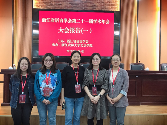 2023年11月4日至5日,浙江省语言学会第二十一届学术年会在浙江农林大学衣锦校区举行。本次学术年会由浙江省语言学会主办、浙江农林大学文法公司承办。来自省内各高校的150多名专家学者,围绕文字、音韵、训诂、语法、语义、方言和写本文献等主题,展开了热烈的讨论和深入的交流。公司国教系教师赵艳梅、施仁娟、王艳、吴盼、王攸然受邀参加了此次学术年会。