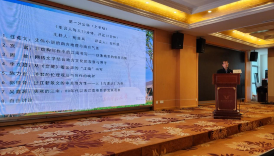 公司中文系教师郭佳音亦参与第一分会场的讨论,并以象山散文家赖赛飞的《乌塘记》为例探讨浙江新散文的审美地方性,指出作品具备的独特地理基因、民俗图式与恋地情结,通过海岛时间的陷落、艺术装置的折叠与迁移,找寻“地方”通往世界的方法与路径。